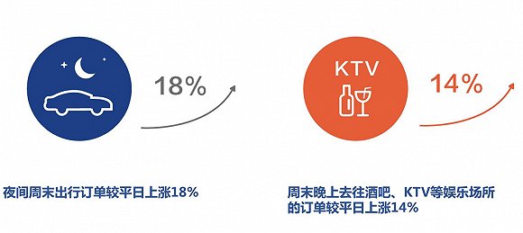 世界杯激活了球迷们的熬夜本能,深夜出行订单激增。根据美团数据显示,为了深夜去看世界杯,夜间出行订单增加,其中夜间周末出行订单较平日上涨18%,周末晚上去往酒吧、KTV等娱乐场所的订单较平日上涨14%,球迷们热爱“打车+餐饮”的一条龙式消费。